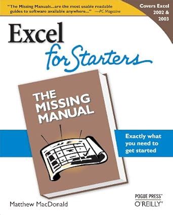 Presently you are looking for an Excel 2003 Starters The Missing Manual example that will we provide here within some type of document formats like as PDF, Doc, Strength Point, as well as images that will will make it easier for you to create an Excel 2003 Starters The Missing Manual yourself. For a more clear look, you can open several examples below. All the examples about Excel 2003 Starters The Missing Manual with this website, we get from many sources so you can create a better document of your own.